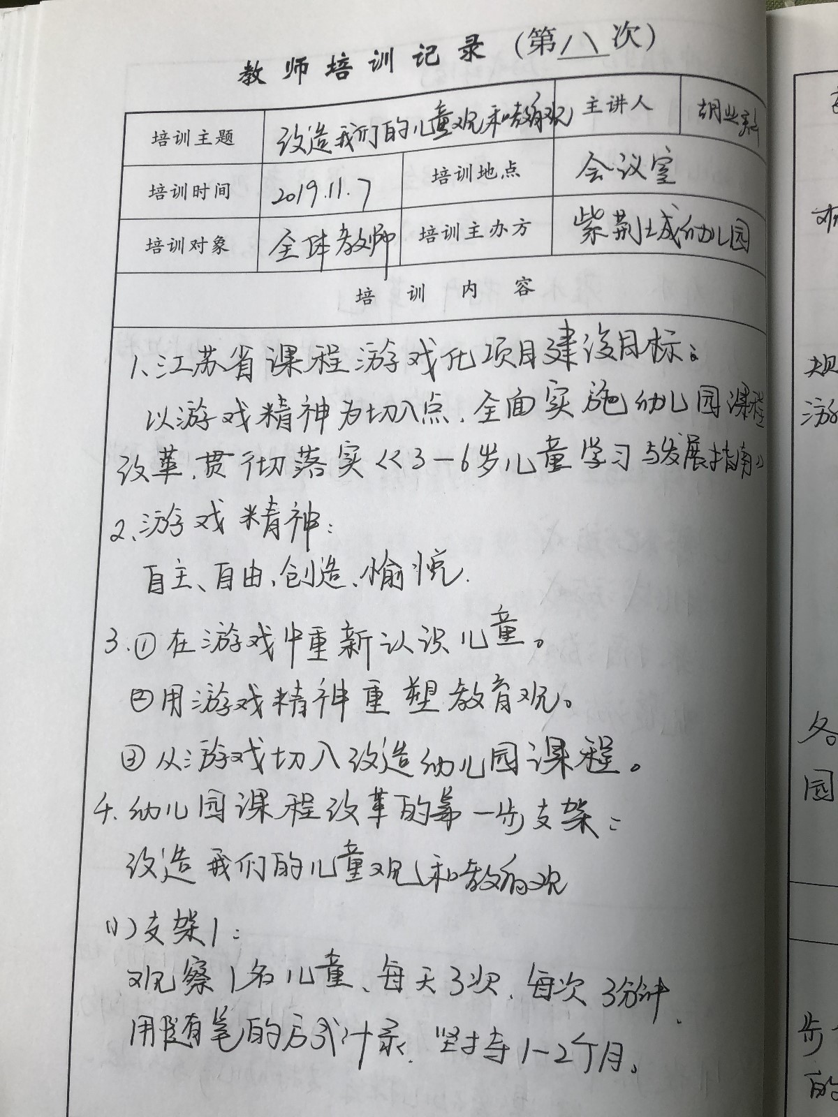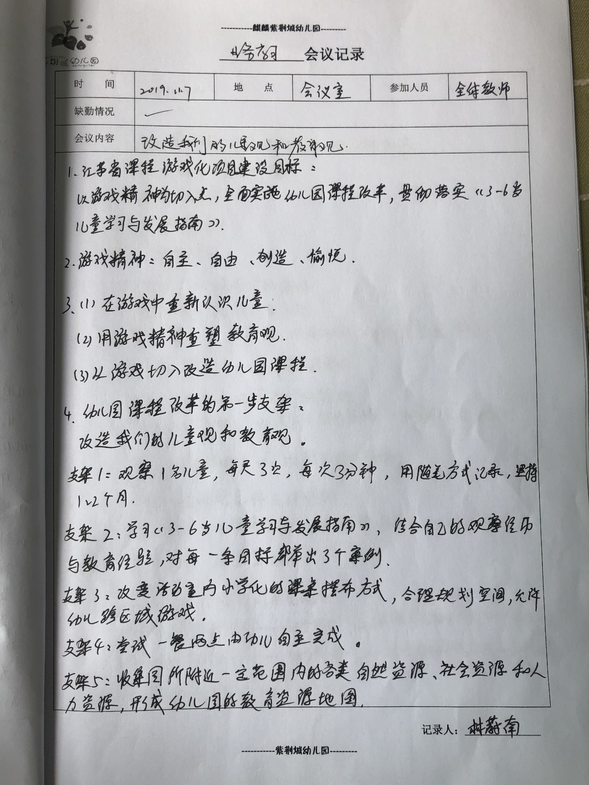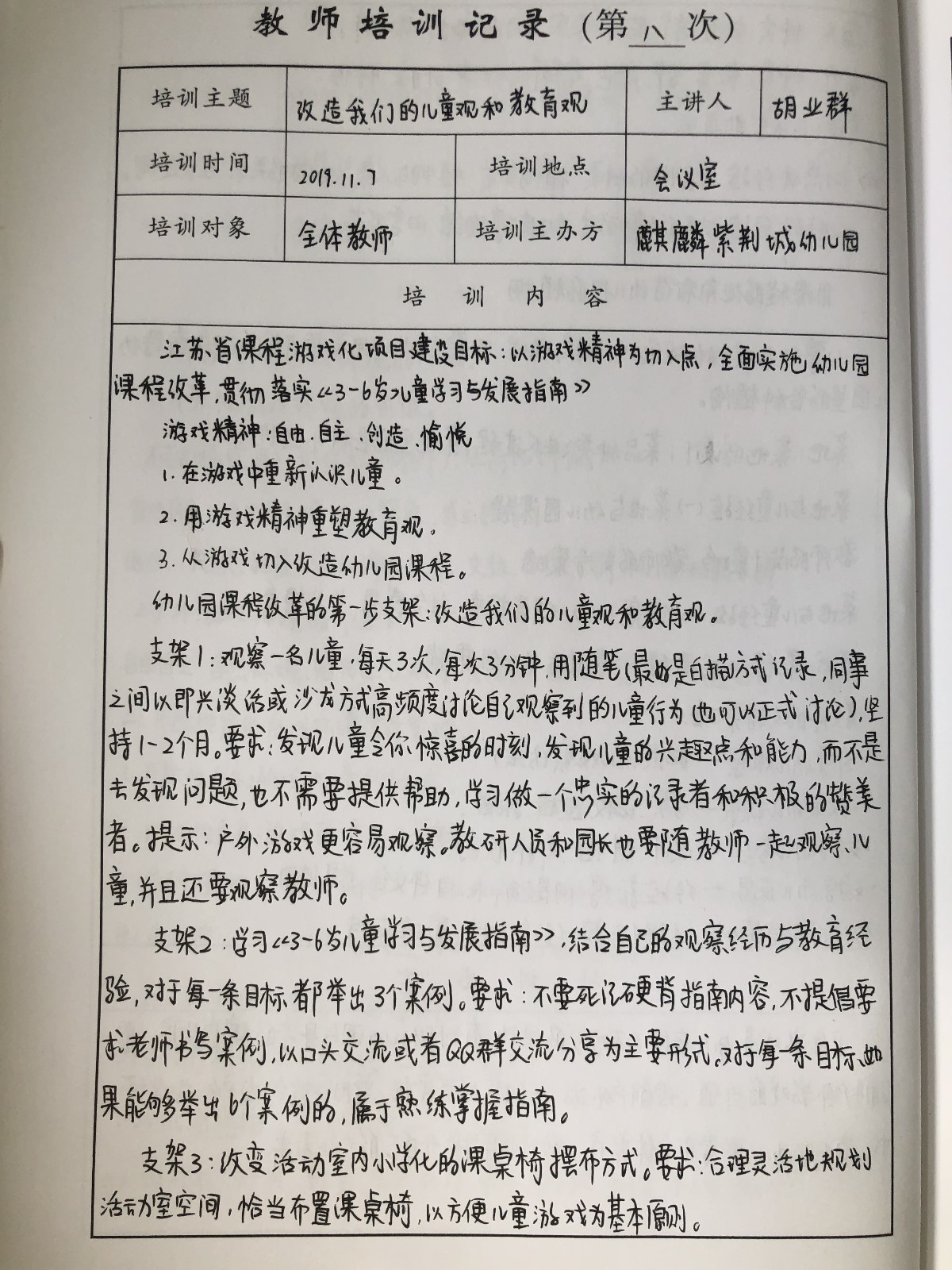 近日,麒麟紫荆城幼儿园的全体教师聚集在会议室,针对《第一步支架:改造我们的儿童观和教育观》,重新梳理了思路,开展了进一步的集中学习和反思。