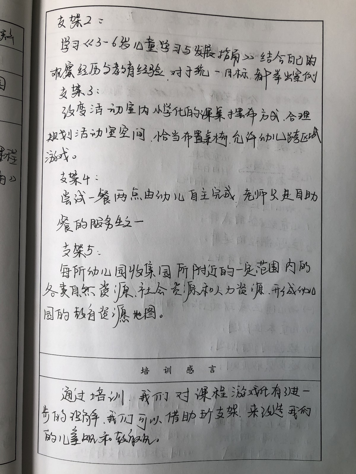 活动中,老师们重新学习了《第一步支架》的相关内容并针对自身情况反思自己的教育行为。我们鼓励教师重新认识“儿童在前,游戏在后”和“生活化、游戏化”的理念。在此基础上,渐渐懂得对生活中的各类资源进行课程化改造,找准自身定位。课程游戏化是一项持续的工作,需要长期坚持不懈的努力,我园将从自身的实际出发,以《指南》为指导,在学习和实践中探索适合幼儿园实际的项目实施的途径和策略,为孩子创设适宜的游戏环境,推进幼儿园课程游戏化的进一步开展,真正让孩子们在游戏的童年里健康快乐成长。