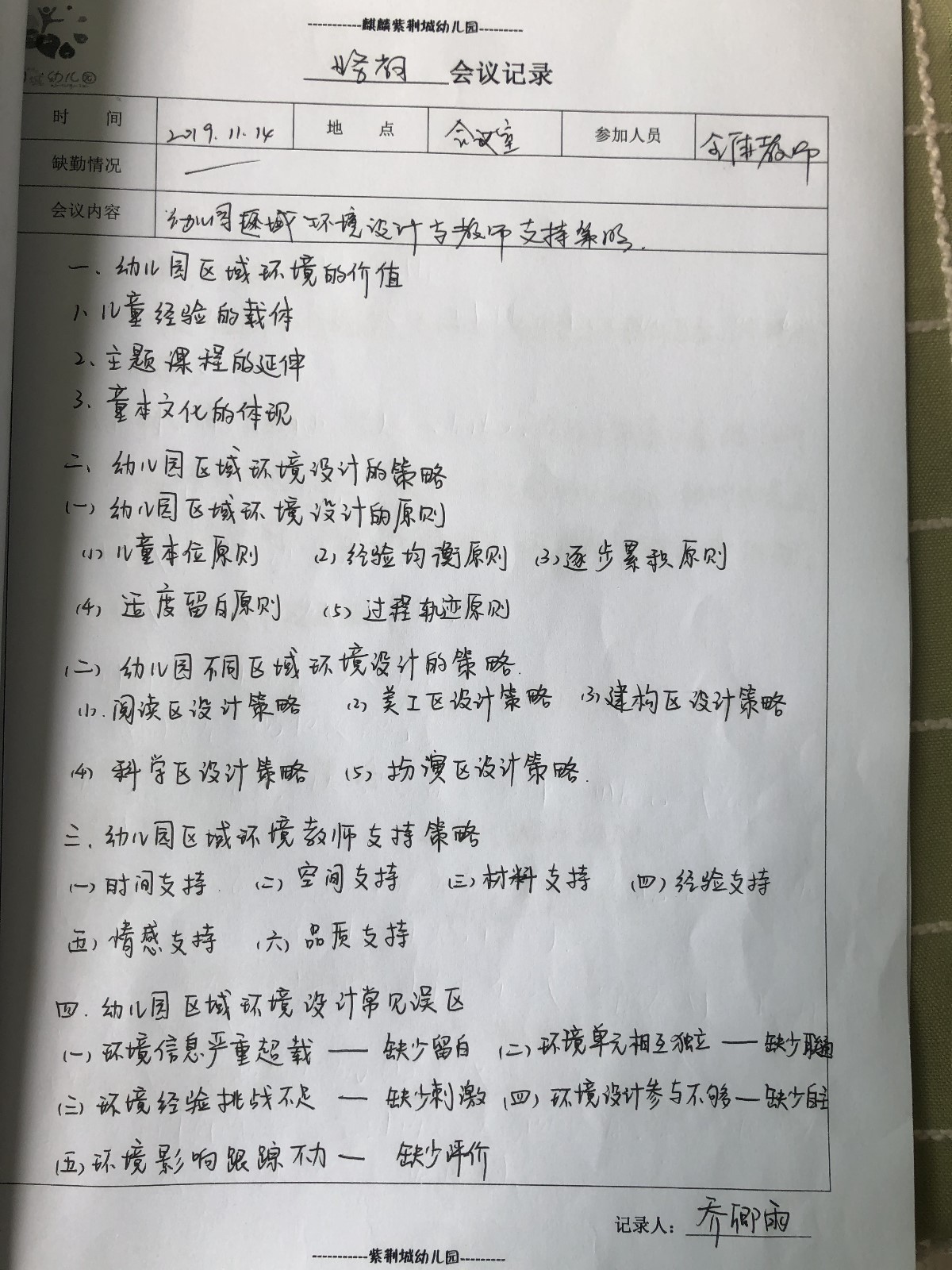 幼儿园区域环境设计与教师支持策略 ——业务学习活动报道