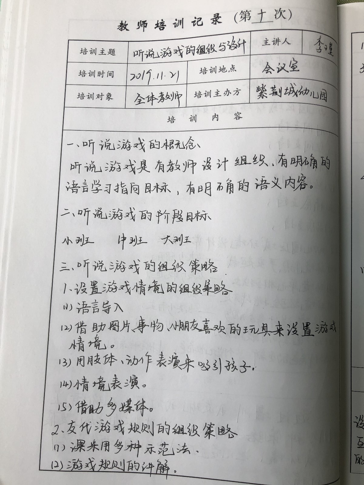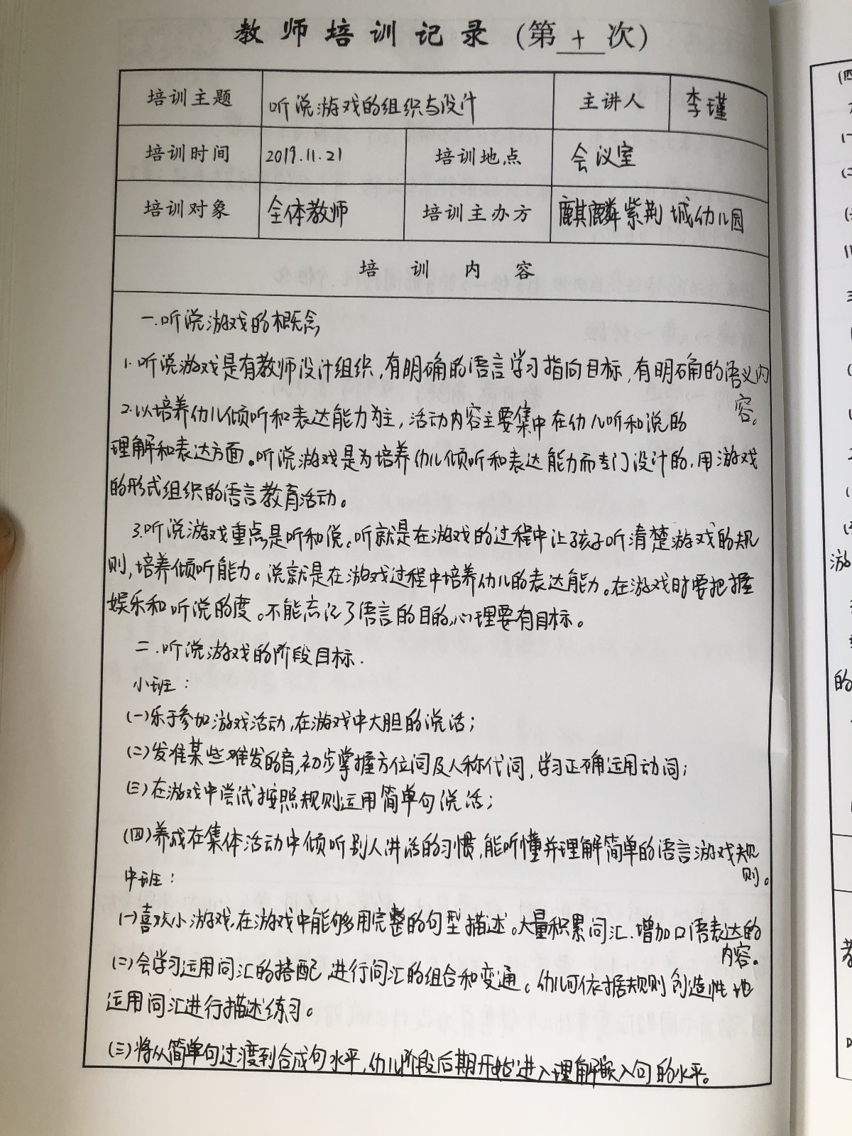 通过此次培训,教师们深刻地体会到听说游戏对幼儿的重要意义,而且更加明确了以后该如何开展听说游戏的活动。教师们在以后的组织听说游戏活动中会更加得心应手!